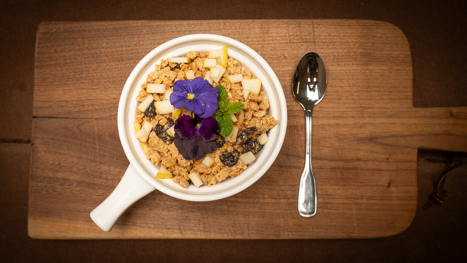 Platter with Granola, Greek Yogurt, and Seasonal Fruit. $9 per person. Minimum order of 6 required.